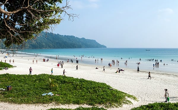 Radhanagar Beach, located on Havelock Island, is one of Asia’s most beautiful beaches, famous for its pristine white sand, turquoise waters, and lush greenery. Also known as Beach No. 7, it offers a serene atmosphere ideal for relaxation, swimming, and sunset viewing. The beach is well-maintained and less commercialized, making it perfect for nature lovers. Its clear water and gentle waves make it safe for all age groups. Awarded the title of “Asia’s Best Beach” by Time Magazine, Radhanagar is a must-visit destination for those seeking tropical beauty and tranquility in the Andaman Islands.